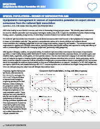 SPECIAL POPULATIONS – WOMEN OF REPRODUCTIVE AGE Dyslipidaemia